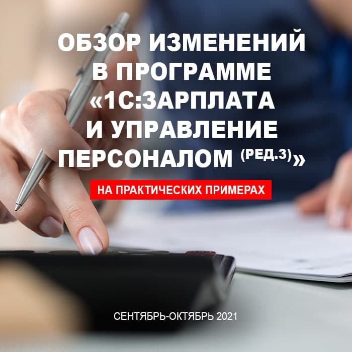 Видеоурок «Обзор изменений в программе «1С:Зарплата и управление персоналом (ред.3)» на практических примерах. Сентябрь-октябрь 2021»
